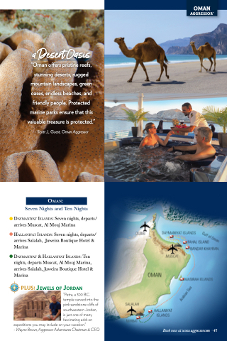 “Oman offers pristine reefs, stunning deserts, rugged mountain landscapes, green oases, endless beaches, and friendly people. Protected marine parks ensure that this valuable treasure is protected.” – Scott J., Guest, Oman Aggressor